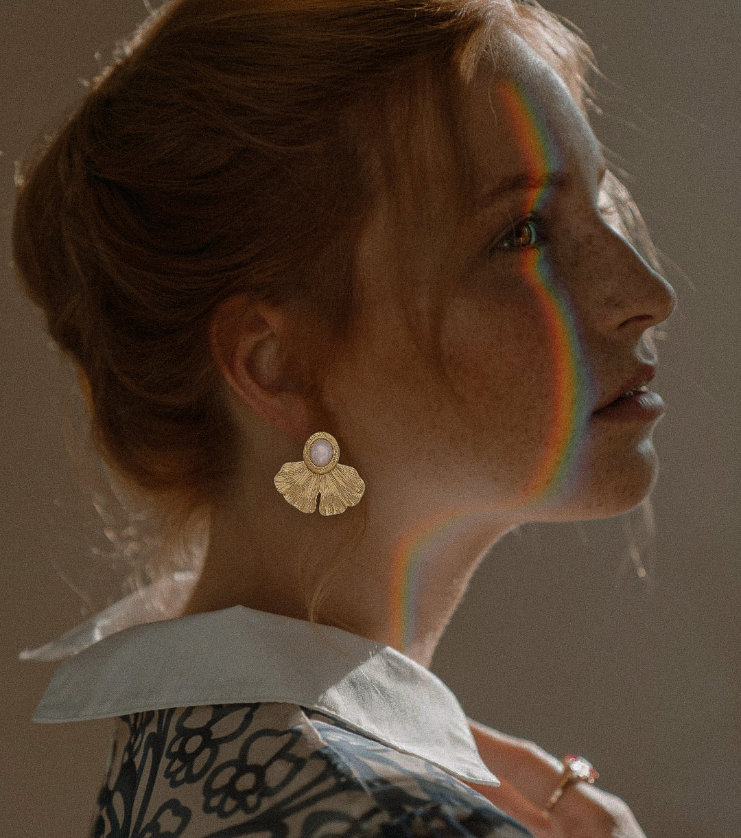 Rosalie | 18K Gold-Plated, Stainless Steel Ginkgo Vintage Earrings